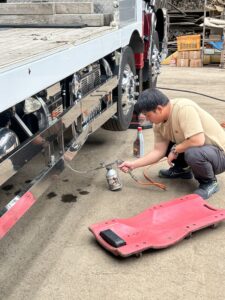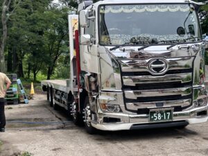 DPFのクリーニングをしていただくために、株式会社タケウチ建設様に行ってきました。